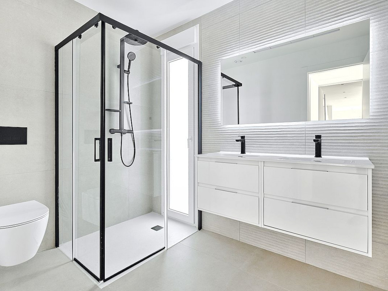Na pierwszym piętrze znajdują się kolejna łazienka dla gości, łazienka i główna sypialnia. Przy głównej sypialni znajduje się łazienka en-suite. Z głównej sypialni i przedpokoju jest dostęp do tarasu o powierzchni 30 m2, z którego roztacza się widok na prywatny taras, ogród i okolicę, w tym na słone jezioro w Torrevieja i naturalną lagunę.