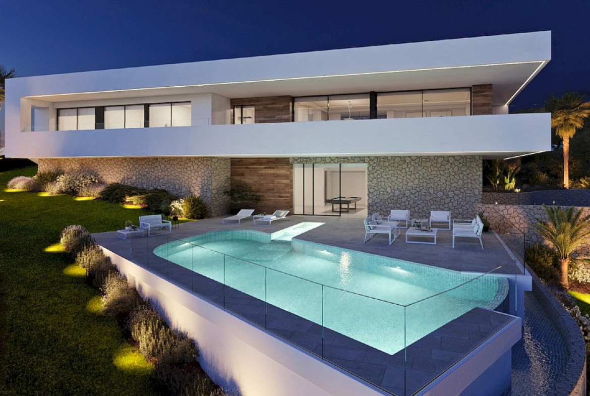Ten nowocześnie zaprojektowany dom znajduje się w najbardziej ekskluzywnej części osiedla mieszkaniowego Cumbre del Sol, w luksusowym Residencial Jazmines. Kompleks obejmuje duże luksusowe wille z imponującymi widokami na morze i fantastycznymi nocnymi widokami na panoramę Calpe i Benidorm w tle.