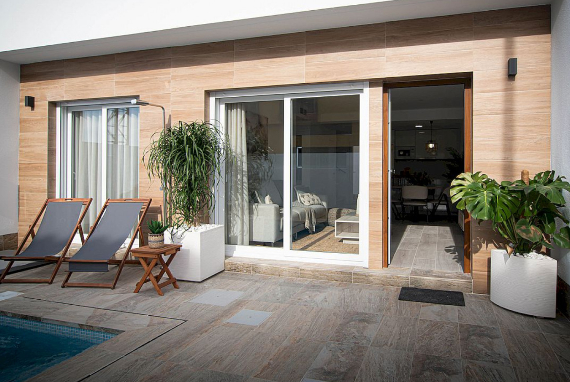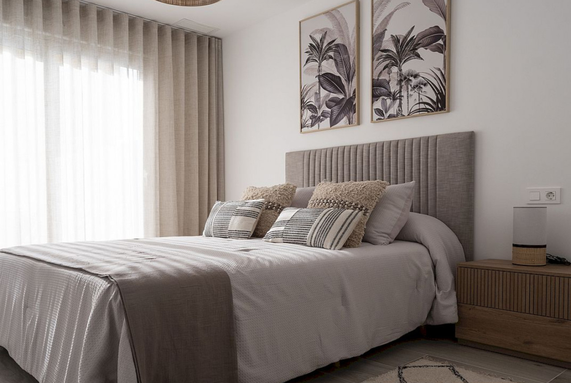 Luksusowy kompleks kamienic i willi z trzema sypialniami i dwiema łazienkami jest rozmieszczony na dwóch poziomach z prywatnym basenem, parkingiem na działce, dużymi tarasami i solarium na górze. Kamienice obejmują w pełni wyposażoną kuchnię i łazienki oraz wstępną instalację klimatyzacji.