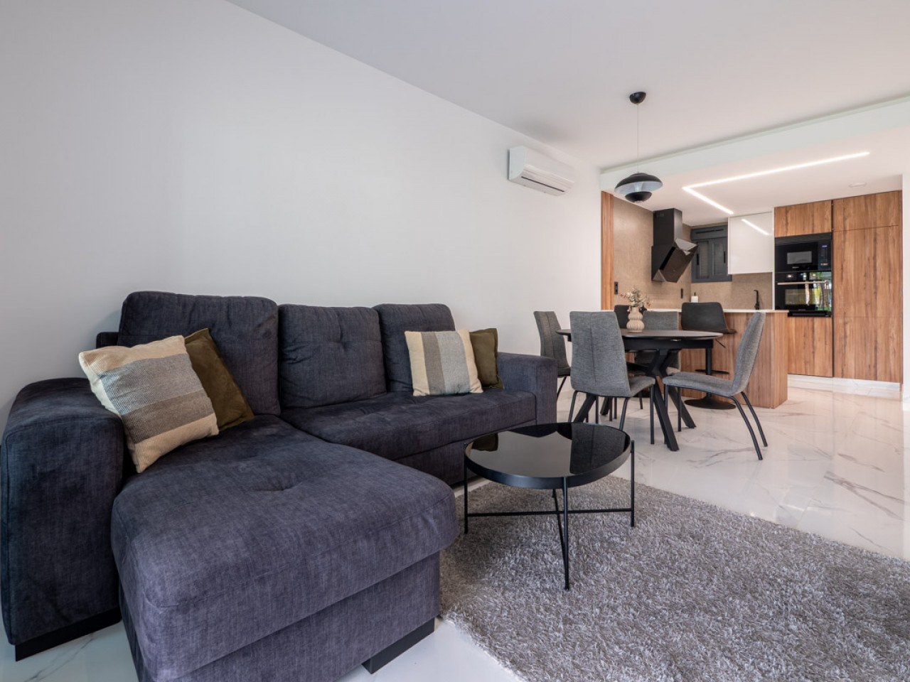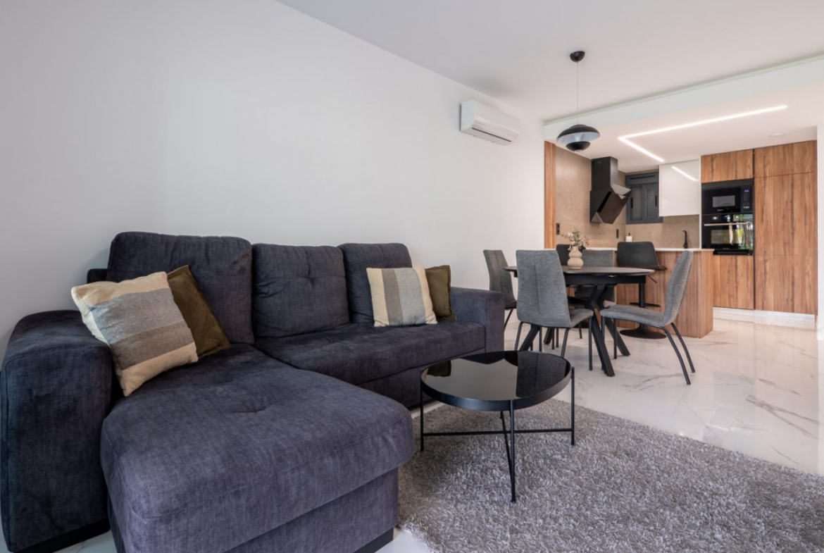 Ciesz się otwartym planem z w pełni umeblowaną kuchnią i salonem.