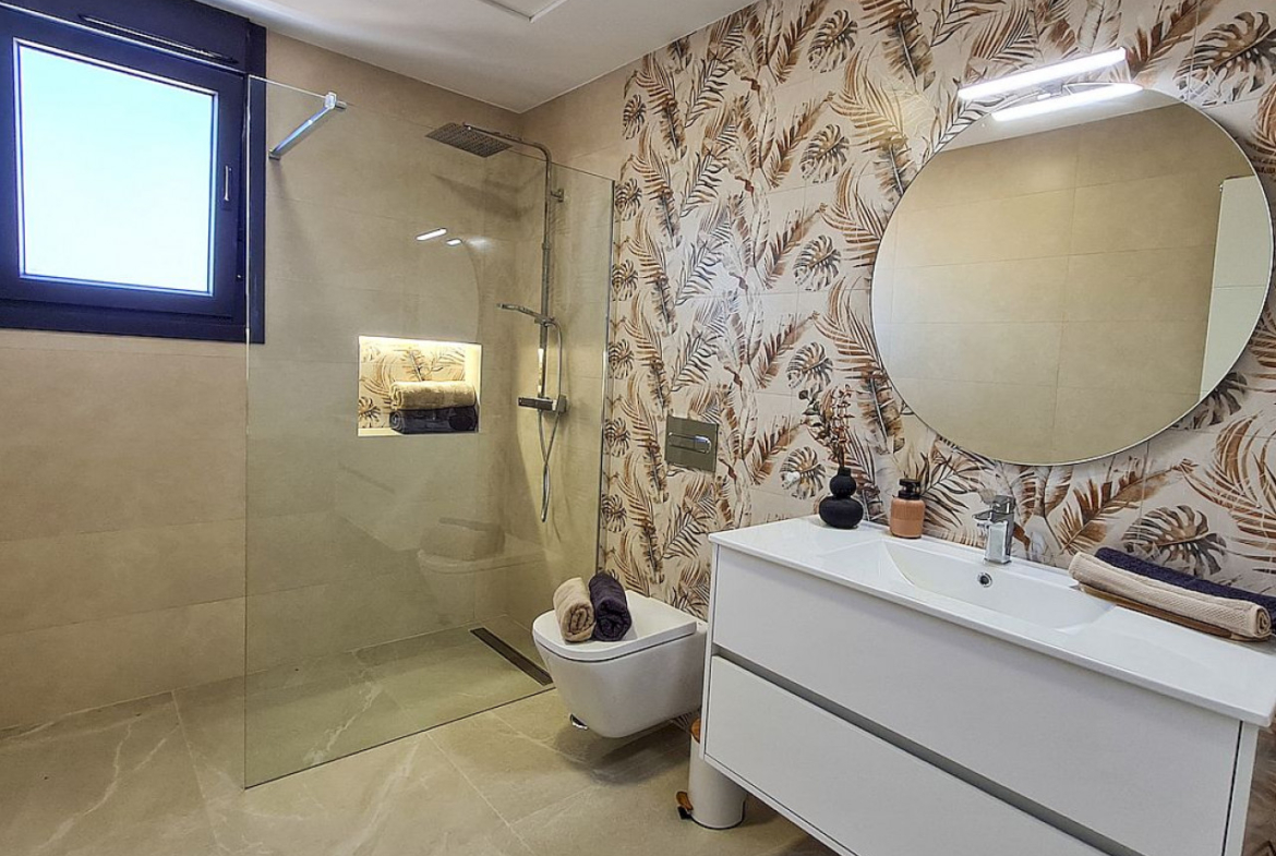 Nieruchomość będzie spełniać najwyższe standardy i będzie wyposażona w prywatny basen, w pełni umeblowaną i wyposażoną kuchnię, oświetlenie LED, zmotoryzowane żaluzje, garderobę w głównej sypialni, w pełni wyposażone łazienki, wstępną instalację podgrzewanych podłóg w łazienkach, wstępną instalację klimatyzacji kanałowej, wstępną instalację paneli słonecznych, solarium i miejsce parkingowe.