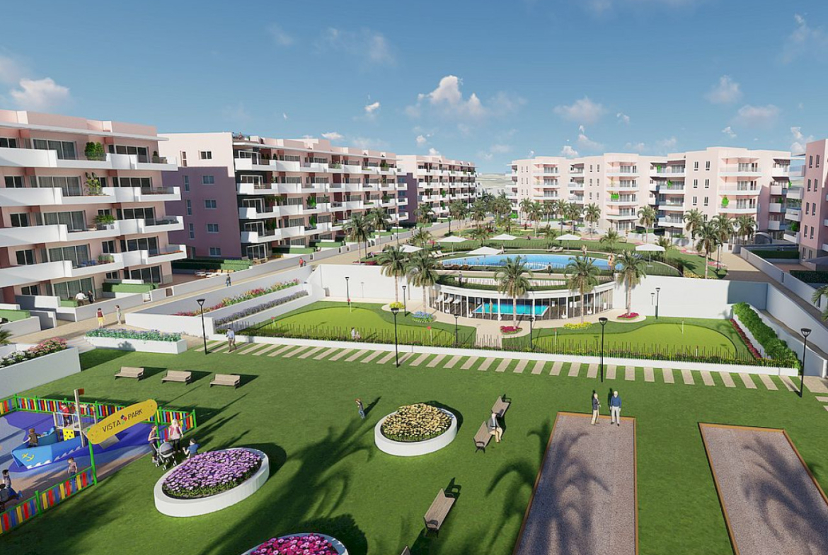 Obejmuje apartamenty z trzema sypialniami i dwiema łazienkami z dużymi tarasami, a także ekskluzywne penthouse’y z jacuzzi i kuchnią na świeżym powietrzu na solarium oraz nieruchomości na parterze z ogrodem, a wszystkie obejmują parking w piwnicy.