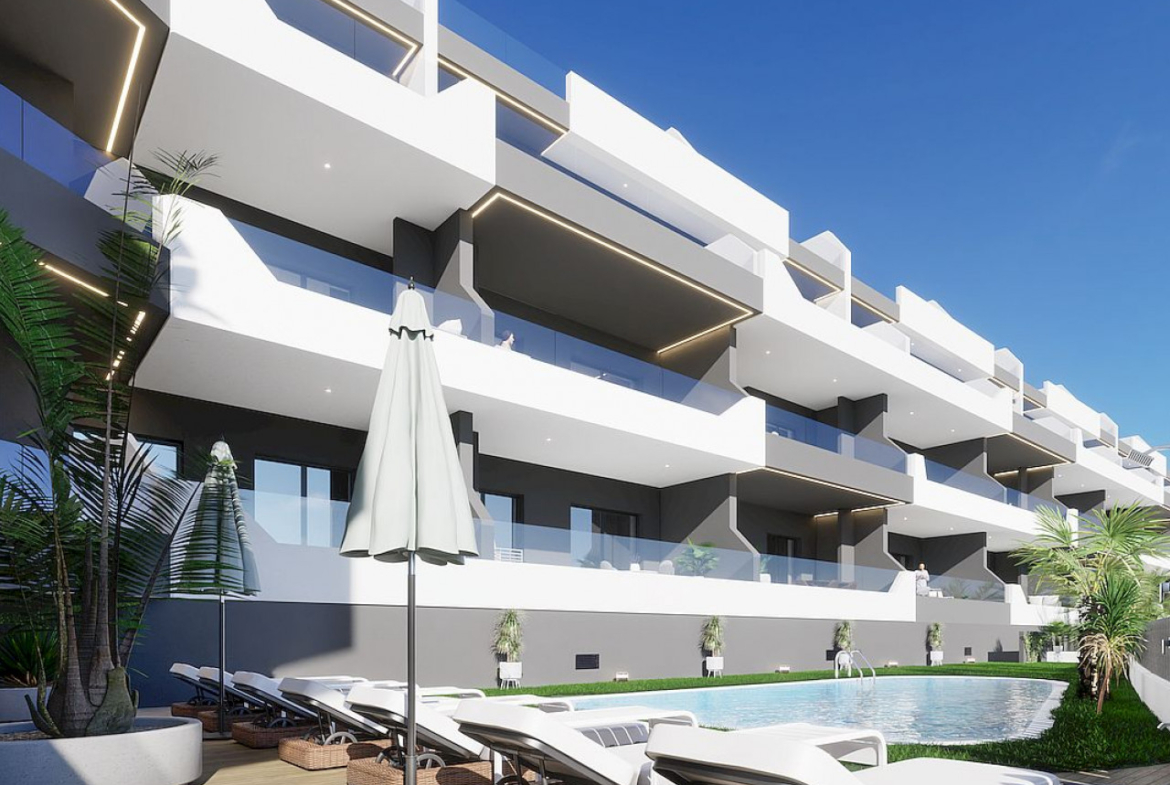 To zupełnie nowe, nowoczesne osiedle znajduje się w popularnej miejscowości Benijofar. Dostępne są apartamenty z dwiema lub trzema sypialniami i dwiema łazienkami. Istnieje również opcja penthouse’u z dużym prywatnym solarium, z którego można podziwiać piękne letnie zachody słońca i widoki na góry. Ponadto osiedle posiada duży teren zielony z basenem dla wszystkich właścicieli, a także opcjonalny parking i komórkę lokatorską.