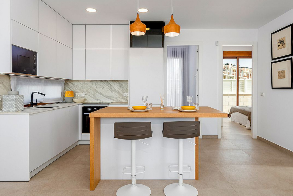 Modelo Estrella składa się z dwóch lub trzech sypialni z dwiema łazienkami, wszystkie na jednym piętrze. Do dyspozycji Gości jest przestronny salon/jadalnia na otwartym planie, prowadzący do prywatnego ogrodu z jadalnią na zewnątrz i basenem, przestronny salon/jadalnia na otwartym planie, prowadzący do prywatnego ogrodu z prywatnym basenem. Solarium na dachu jest dostępne z ogrodu.