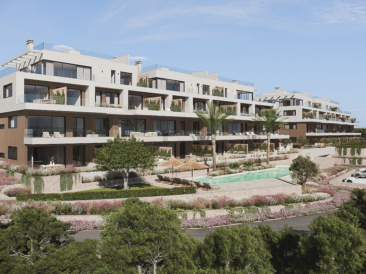Ekskluzywne apartamenty z 2 i 3 sypialniami są idealnym miejscem, aby cieszyć się stylem życia, w którym komfort i design przeplatają się z urokiem śródziemnomorskiego stylu życia. Na pierwszym i drugim piętrze znajdują się apartamenty z dwiema i trzema sypialniami. Każdy apartament oferuje dwie łazienki ( (jedną w głównej sypialni). Apartamenty na parterze posiadają prywatny i przytulny ogród, idealny do stworzenia własnej oazy spokoju. Penthouse’y z trzema sypialniami oferują imponujące 134,90 m2 powierzchni mieszkalnej i są wyposażone w przestronne solarium. Poczucie przestronności przepływa przez całą rezydencję, z otwartym układem, który płynnie łączy salon, jadalnię i kuchnię.