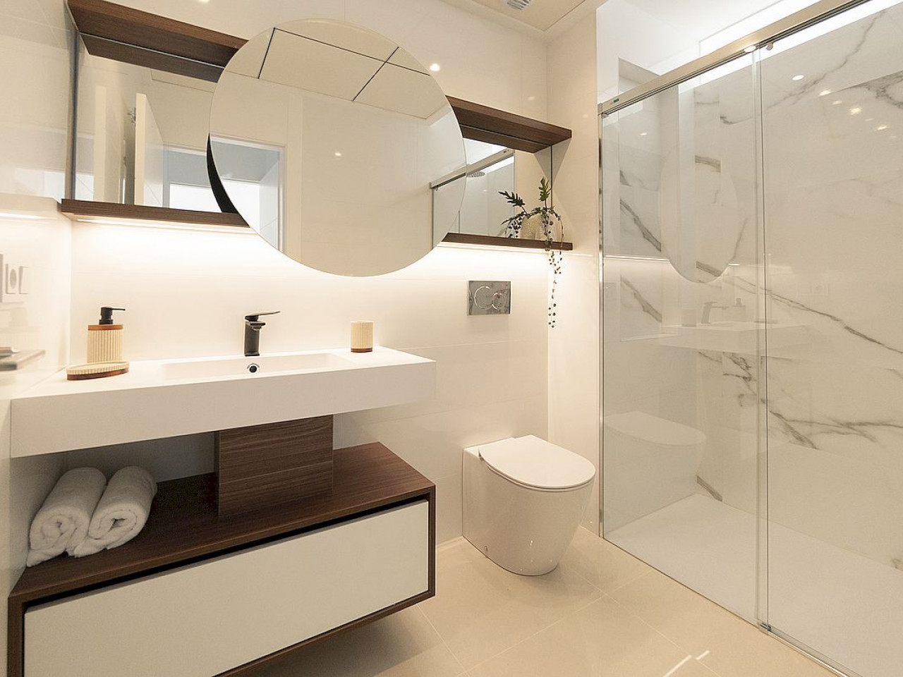 Te nieruchomości z 2 sypialniami i 2 łazienkami mają prywatny ogród w opcji na parterze lub solarium w opcji na najwyższym piętrze, zapewniając przestrzeń na zewnątrz do relaksu i cieszenia się prywatnością. Przestronny salon-jadalnia z otwartą kuchnią oferuje przytulną i nowoczesną atmosferę, aby cieszyć się niezapomnianymi chwilami z rodziną i przyjaciółmi. Miejsce parkingowe jest wliczone w cenę, gwarantując mieszkańcom komfort i bezpieczeństwo