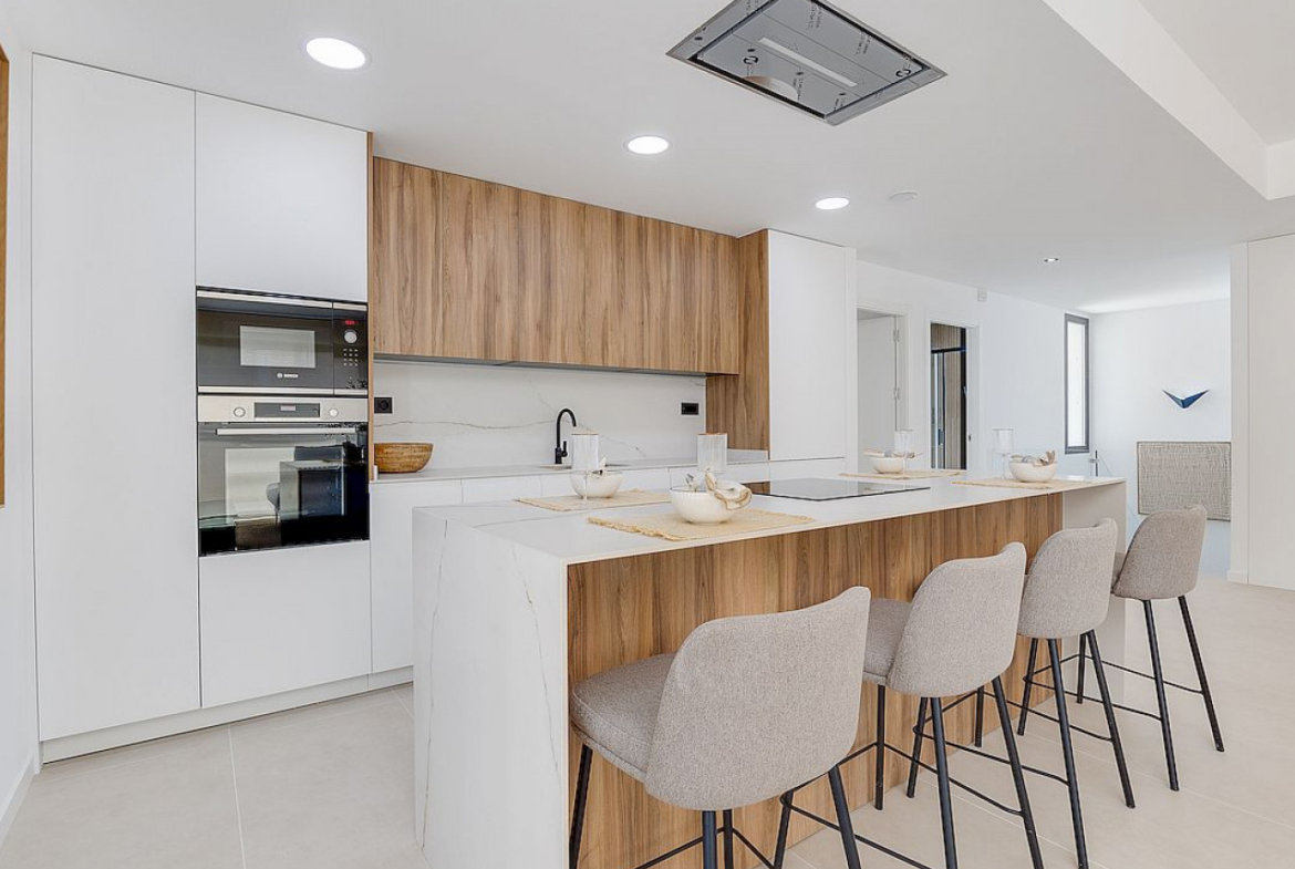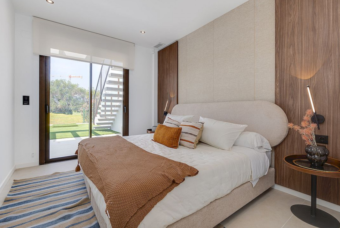 Ta nowoczesna willa ma trzy duże sypialnie i trzy pełne łazienki, wszystkie z wysokiej jakości wykończeniami. Przestrzeń przepływa harmonijnie z salonu do otwartej kuchni, tworząc idealne środowisko do życia rodzinnego . Na zewnątrz Twoja prywatna działka o powierzchni 350 metrów kwadratowych stanowi osobistą oazę. A basen to idealne miejsce na ochłodę w upalne letnie dni, a solarium na górze zachęca do relaksu i podziwiania wspaniałych widoków na pole golfowe La Serena i otaczającą przyrodę.