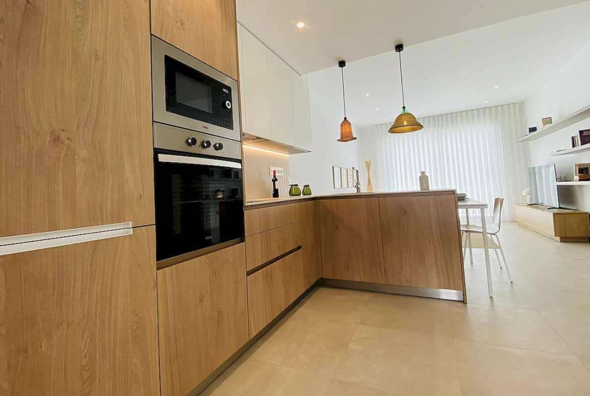 Apartamenty na parterze mają dwie lub trzy sypialnie, otwarty układ między salonem a kuchnią oraz duży taras/taras z widokiem na wspólny basen. Apartamenty na najwyższym piętrze będą miały słoneczny taras na dachu z zamkniętą letnią kuchnią, pergolę, toaletę i sztuczną trawę.