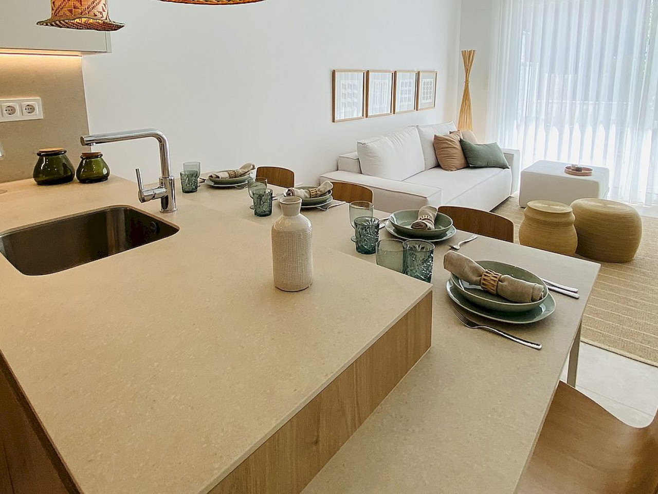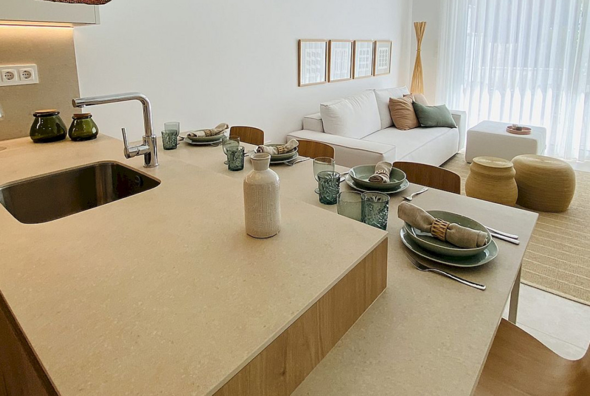 Apartamenty na parterze mają dwie lub trzy sypialnie, otwarty układ między salonem a kuchnią oraz duży taras/taras z widokiem na wspólny basen. Apartamenty na najwyższym piętrze będą miały słoneczny taras na dachu z zamkniętą letnią kuchnią, pergolę, toaletę i sztuczną trawę.