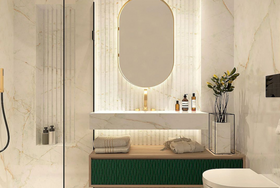 Inwestycja składa się z dwóch 9-piętrowych bloków z 1 do 3 sypialniami, apartamentów z przestronnym salonem z kuchnią w stylu amerykańskim i drzwiami tarasowymi prowadzącymi na taras z widokiem na morze we wszystkich nieruchomościach, zagospodarowanymi częściami wspólnymi, imponującym basenem, siłownią i sauną .