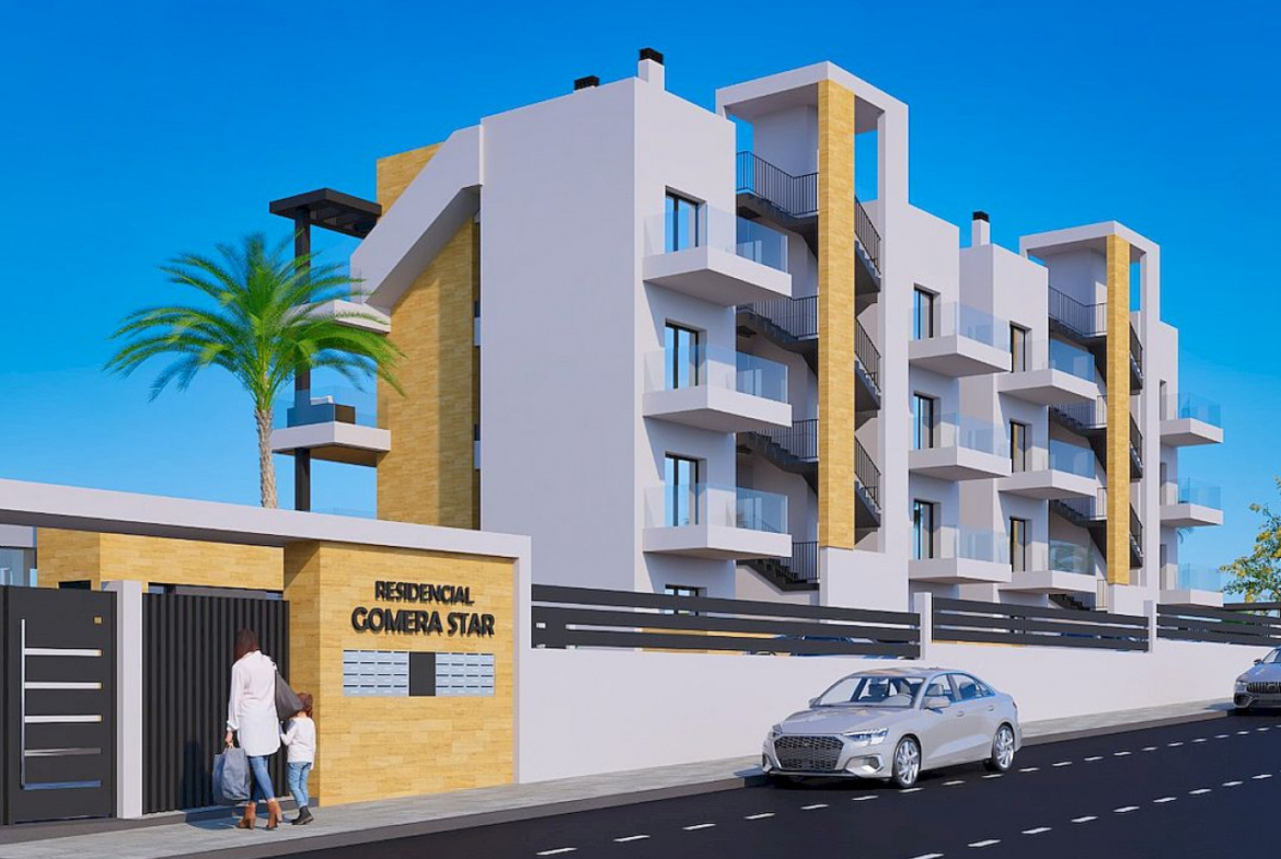 Gomera Star to projekt nowoczesnych apartamentów z dwiema sypialniami, przestronnymi tarasami i doskonałą lokalizacją blisko morza w tętniącej życiem dzielnicy Aguas Nuevas w Torrevieja.