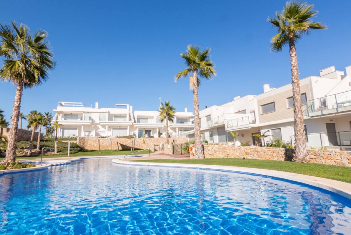 2 lub 3 pokojowe dwupoziomowe domy w Los Montesinos, Południowa Costa Blanca To piękny, wygodnie rozpołożony kompleks domków o 2 lub 3 sypialniach, wyposażone w ogródek lub solarium na dachu. Kompleks ten oferuje również wspólny basen, jacuzzi z różnego rodzaju prysznicami, plac zabaw dla dzieci oraz parking. Usytuowany w pobliżu pola golfowego i jest zaledwie 15 minut jazdy od pięknych plaż Orihuela Costa, z których można korzystać prawie przez cały rok dzięki wspaniałemu klimatowi śródziemnomorskiemu.