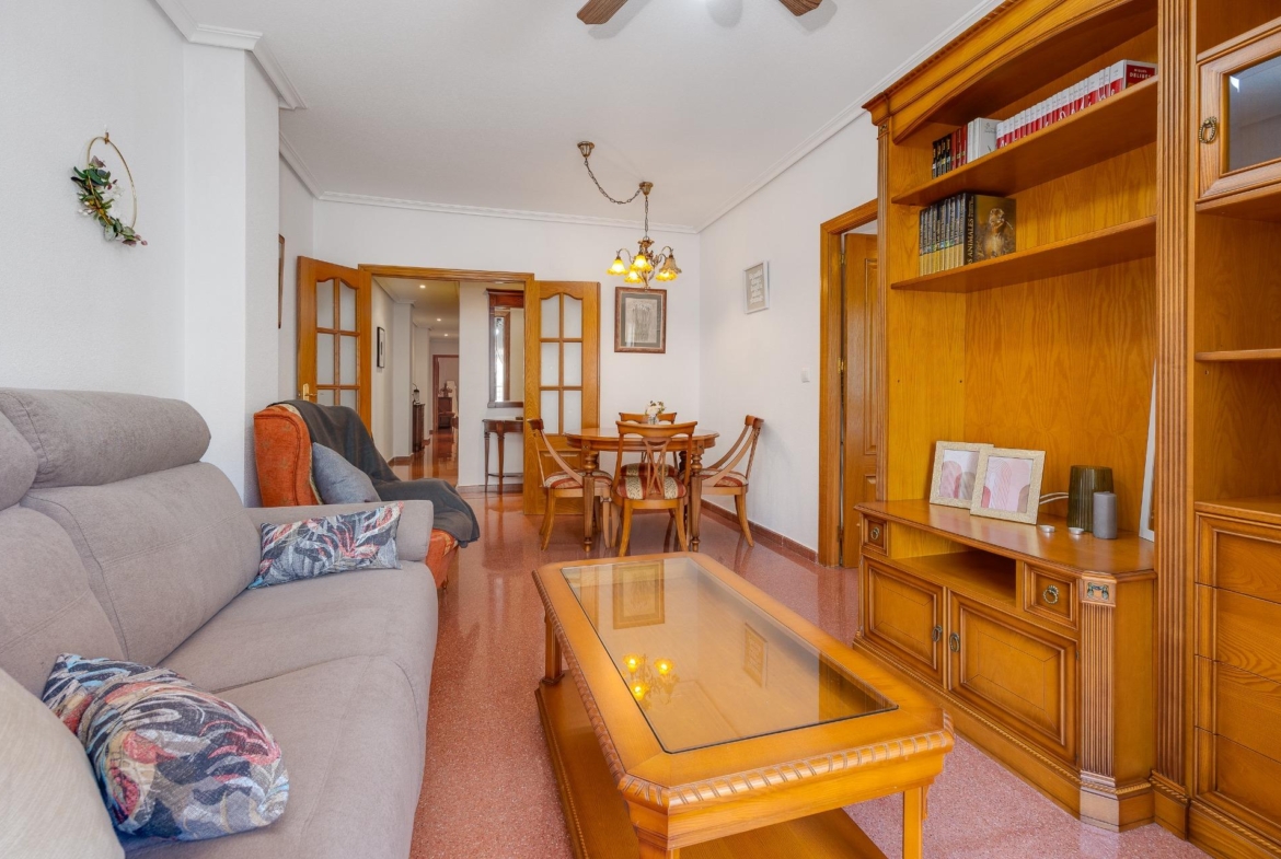 Przedstawiamy Państwu uroczy apartament na poddaszu, położony w samym sercu Torrevieja, zaledwie 200 metrów od plaży i 30 metrów od Ermita de Torrevieja, otoczony wszystkimi niezbędnymi udogodnieniami, takimi jak supermarkety, przystanki autobusowe, nadmorskie promenady, restauracje, bary, plaże itp. Mieszkanie, znajdujące się na czwartym piętrze z windą, oferuje piękny widok panoramiczny dzięki swojej wysokości. Budynek posiada również dostęp dla osób z ograniczoną mobilnością oraz windę. Apartament składa się z dwóch przestronnych sypialni, dwóch pełnych łazienek, w pełni wyposażonej niezależnej kuchni z dostępem do małej galerii użytkowej oraz przytulnego salonu z jadalnią z bezpośrednim wyjściem na imponujący taras, który jest słoneczny przez cały dzień dzięki swojej orientacji—idealny do relaksu i podziwiania widoków. Ponadto budynek oferuje wspólny taras słoneczny, na którym znajduje się prywatny schowek mieszkania, zapewniający dodatkową przestrzeń do przechowywania. Nie przegap okazji, aby zamieszkać w uprzywilejowanej lokalizacji blisko morza, z wszystkimi udogodnieniami w zasięgu ręki. Idealne miejsce na cieszenie się najlepszym stylem życia w Torrevieja!