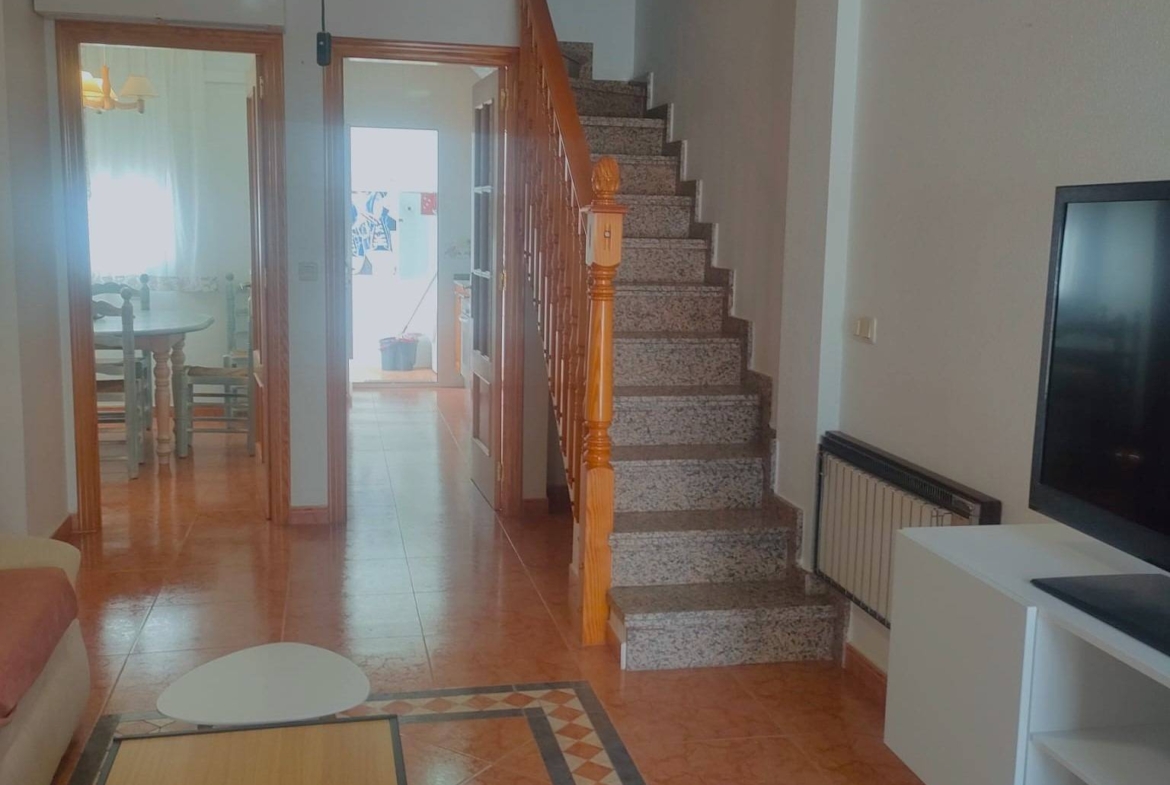 Piękny dwupoziomowy dom w Pilar de la Horadada, La Torre de la Horadada, 400 m od plaży. Składa się z 4 sypialni dwuosobowych, z pokojem na poddaszu, który może być używany jako biuro lub inny pokój, nawet pokój zabaw, jeśli masz rodzinę. Ta wspaniała nieruchomość jest gotowa do zamieszkania, z w pełni wyposażoną kuchnią. Posiada zarówno zewnętrzny taras, jak i wewnętrzne patio oraz balkon, na którym można się opalać. Niektóre dodatki: woda, klimatyzacja, wbudowane szafy, balkon, jasne, meble, patio, telewizor, taras, autobusy, drzewa, centra handlowe, parki, supermarkety i place zabaw dla dzieci. Przyjdź i odwiedź go i ciesz się miejscem zamieszkania na plaży przez cały rok w wyjątkowej okolicy! Przetłumaczono z DeepL.com (wersja darmowa)