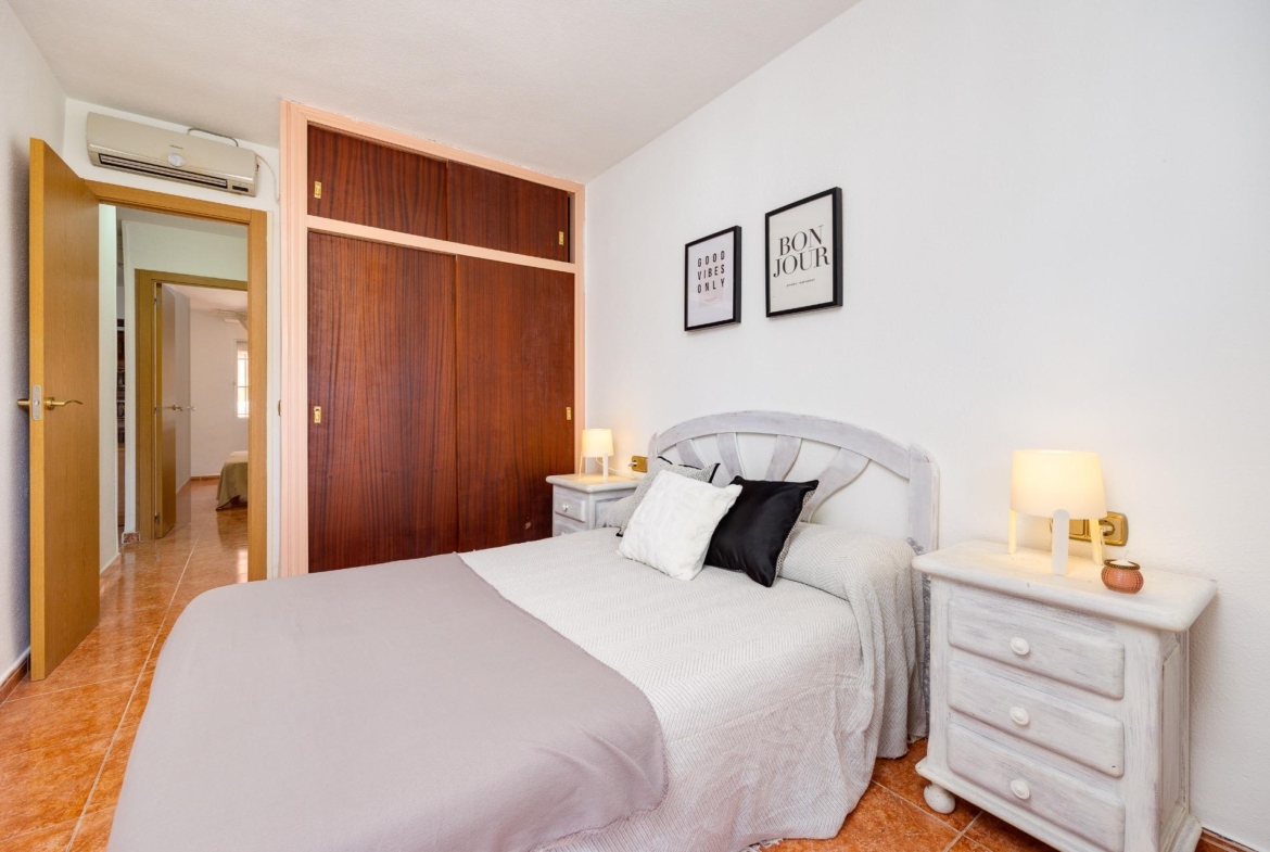 Na sprzedaż mieszkanie znajdujące się w jednym z renomowanych budynków Peysa, zaledwie 300 metrów od plaży Los Náufragos i 5 minut jazdy od centrum Torrevieja. Doskonała lokalizacja zapewnia bliskość wszystkich niezbędnych usług, takich jak supermarkety, apteki, transport publiczny oraz strefy rekreacyjne. Mieszkanie znajduje się na parterze i posiada przystosowany dostęp dla osób z ograniczoną mobilnością. Dodatkowo dostępny jest wspólny basen — idealny na letni wypoczynek. Nieruchomość składa się z dwóch sypialni dwuosobowych, w pełni wyposażonej łazienki z prysznicem oraz niezależnej kuchni. Przestronny salon z jadalnią posiada oszklony taras, co zapewnia dodatkową, jasną przestrzeń idealną do użytku przez cały rok. Do dyspozycji jest również praktyczna galeria, którą można zaadaptować na pralnię lub schowek — w zależności od potrzeb kupującego. Doskonała okazja zarówno na stałe zamieszkanie, jak i inwestycję w jednej z najbardziej pożądanych lokalizacji w Torrevieja.