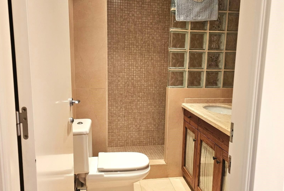 Ładny penthouse z 2 sypialniami z których jedna jest z łazienką, 2 łazienkami, dużą garderobą z kilkoma szafami w głównej sypialni, w pełni wyposażoną niezależną kuchnią, salonem z dostępem do tarasu o powierzchni 15 m2 i klejnotem tego domu jest prywatne solarium o powierzchni 49 m2. Jest to bardzo słoneczna i przestronna nieruchomość z wieloma możliwościami rozbudowy, w której można podzielić pokój na dodatkową sypialnię. Penthouse jest w idealnym stanie do zamieszkania i opalania się na tarasie. W pobliżu znajdują się wszystkie udogodnienia, takie jak restauracje, supermarkety i tylko 15 minut spacerem do plaży.