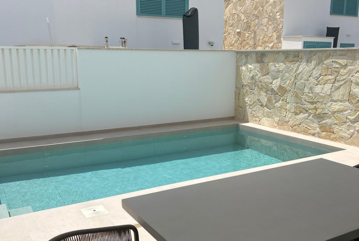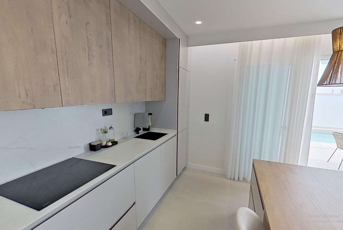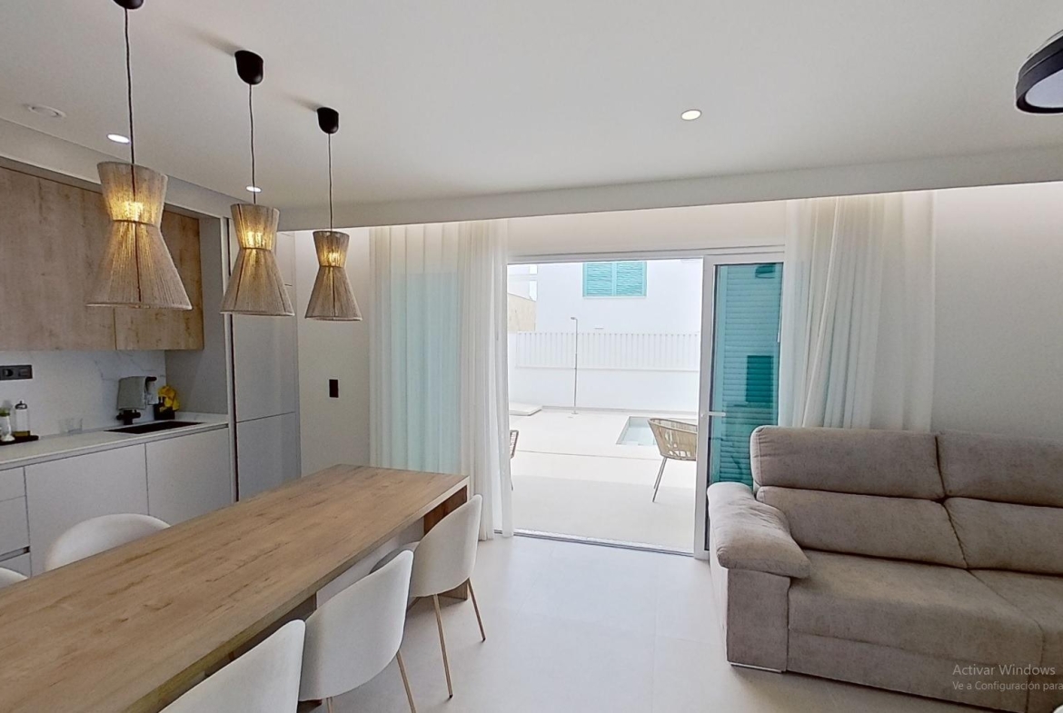 Odkryj ten spektakularny i nowoczesny bungalow na parterze, położony w jednej z najlepszych lokalizacji w El Pilar de la Horadada – zaledwie 400 metrów od plaży! Prawdziwy luksus, by cieszyć się Morzem Śródziemnym zaledwie kilka kroków od domu. Nieruchomość oferuje funkcjonalny i jasny układ: składa się z 3 sypialni (jednej podwójnej i dwóch pojedynczych), 2 kompletnych łazienek z prysznicem oraz przestronnego salonu z jadalnią i otwartą kuchnią w stylu amerykańskim – zaprojektowaną dla maksymalnej wygody i stylu. Na zewnątrz znajduje się duży taras z prywatnym ogrodem, idealny do relaksu, korzystania ze strefy chill-out lub kąpieli w prywatnym basenie. Dodatkowo, przy wejściu znajduje się drugi taras z ogrodem – idealne miejsce na powitanie gości lub śniadanie na świeżym powietrzu. Do nieruchomości przynależy również miejsce garażowe – dodatkowy atut dla komfortu i bezpieczeństwa. Położony w pobliżu wszystkich niezbędnych usług (supermarkety, restauracje, apteki itp.), ten dom doskonale sprawdzi się jako stałe miejsce zamieszkania, dom wakacyjny lub inwestycja.