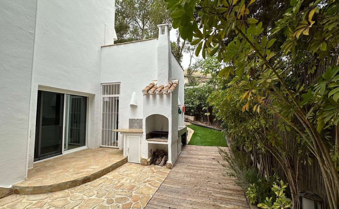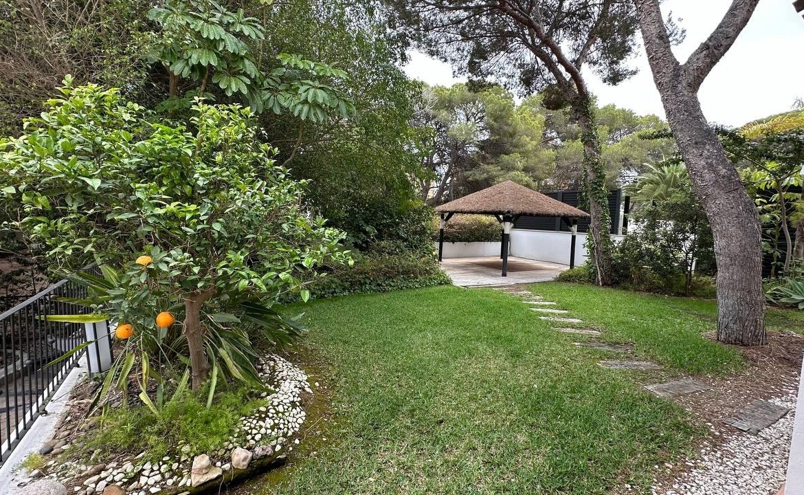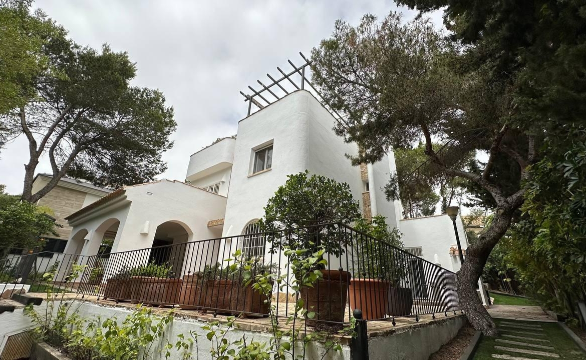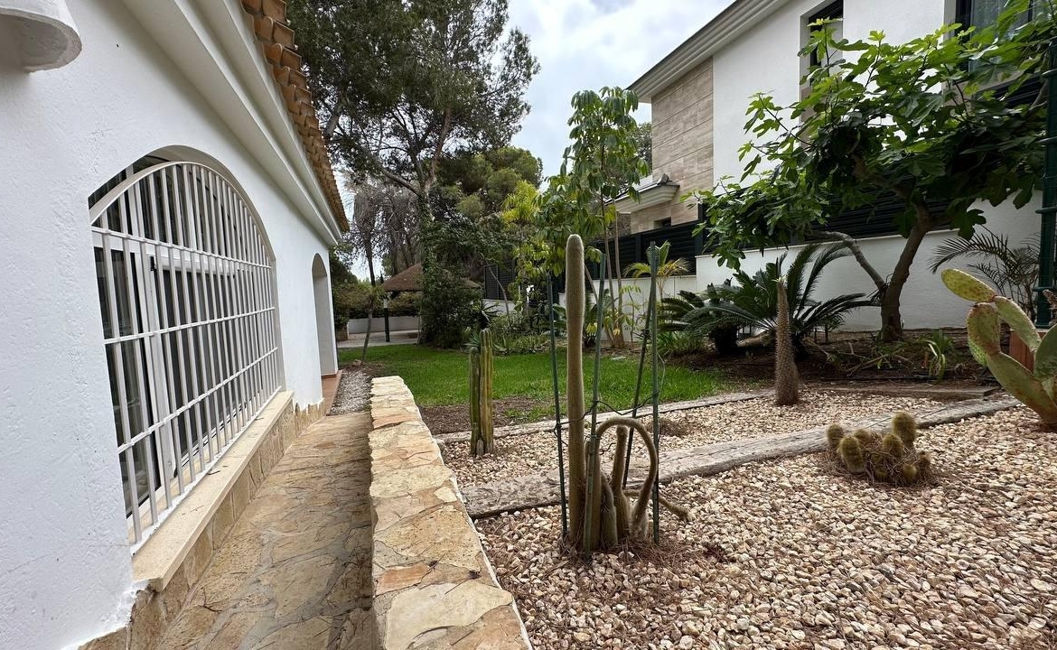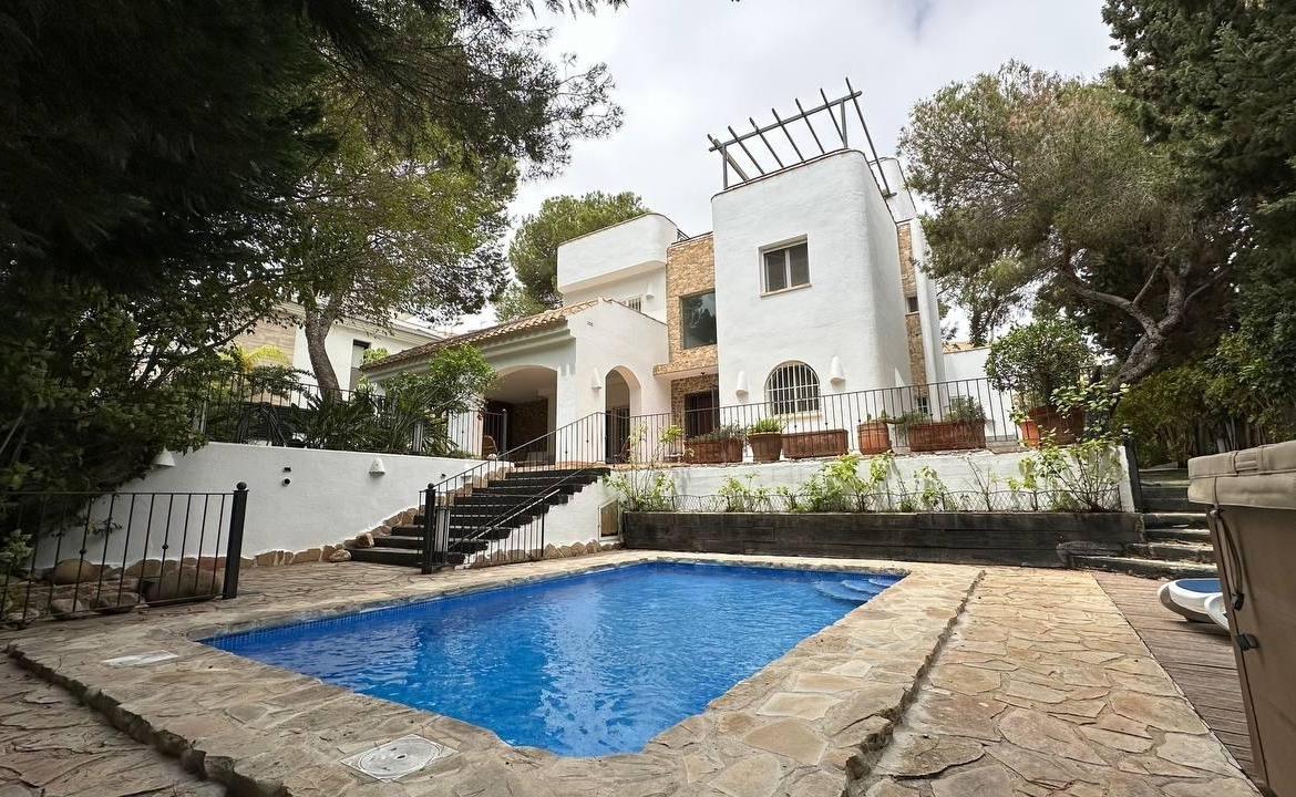 Wspaniały, luksusowy, wolnostojący dom rodzinny, położony w sercu Dehesa de Campoamor na działce o powierzchni 762 m², z widokiem na Morze Śródziemne i naturalny las sosnowy. Jest rozmieszczony na trzech piętrach, ma urzytkową powierzchni 247 m², powierzchnia konstrukcyjną 305 m², a całkowita powierzchnia domu z tarasami, solarium i punktami widokowymi na morze wynosi 446 m². Ta ekskluzywna nieruchomość posiada 5 sypialni, w tym jedną en suite z dużą garderobą, 4 łazienki, ogromny salon, dużą kuchnię na otwartym planie – jadalnię, pralnię, pomieszczenie gospodarcze i otwarte tarasy z widokiem na morze i południową orientacją. Posiada również zadaszony garaż na dwa samochody i ładowanie dla samochodu elektrycznego. Na działce znajduje się odkryty basen o 3,70 x 6,00 m, a także miejsce do grillowania. Rok budowy 2003, po przeprowadzeniu ostatnich prac związanych z poprawą wykończenia i instalacji w 2014 roku. Posiada ogrzewanie grzejnikami i olejem napędowym we wszystkich pomieszczeniach, ogrzewanie podłogowe w łazienkach i kuchni z pralnią, klimatyzację za pomocą 4 splity, saunę fińską “Inbeca” oraz wszystkie niezbędne sprzęty do komfortowego pobytu. Sprzedawane jest w pełni umeblowane. W cenie zawarte są naprawy wszelkich wad wykończeniowych, a także remont wszystkich instalacji i urządzeń.