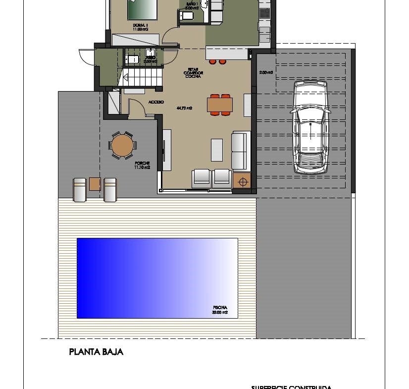 W okolicy znajdziesz wszystkie niezbędne usługi do życia przez cały rok: supermarkety, apteki, kawiarnie, restauracje, centra handlowe … A jeśli jesteś również entuzjastą golfa, mniej niż 10 minut drogi możesz wybrać między trzema uprzywilejowanymi polami golfowymi światowej sławy kursy, na których wystawisz swój cel na próbę: Las Colinas Golf, Villamartín lub Las Ramblas.