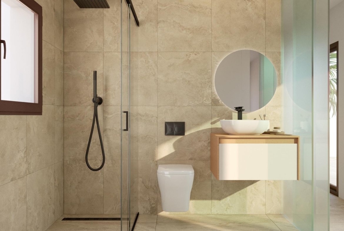 Wille zbudowane na 2 piętrach, mają 3 sypialnie, 2 łazienki, kuchnię na otwartym planie z częścią dzienną, w której znajdują się duże okna z bezpośrednim dostępem do tarasu i basenu.