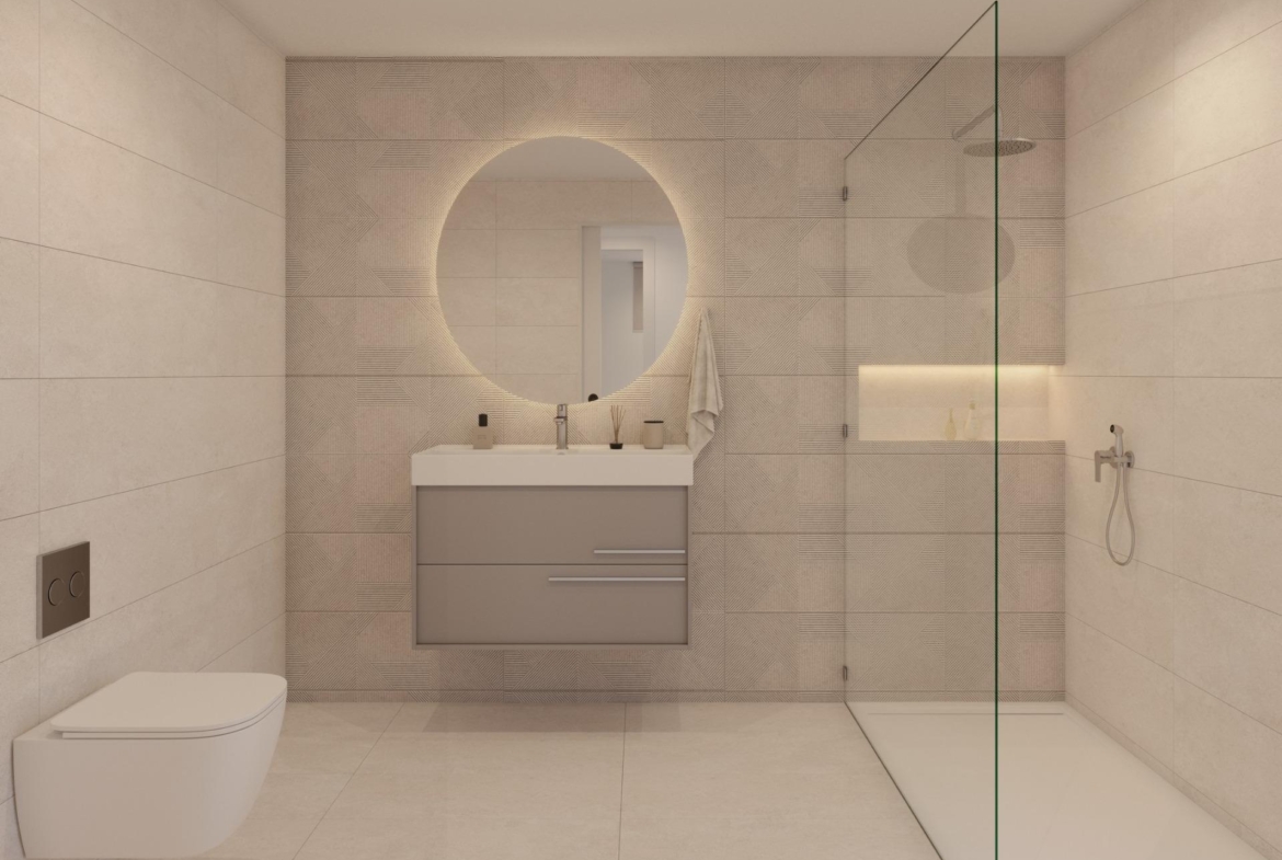 Łazienki z meblami, lustrami i parawanami prysznicowymi