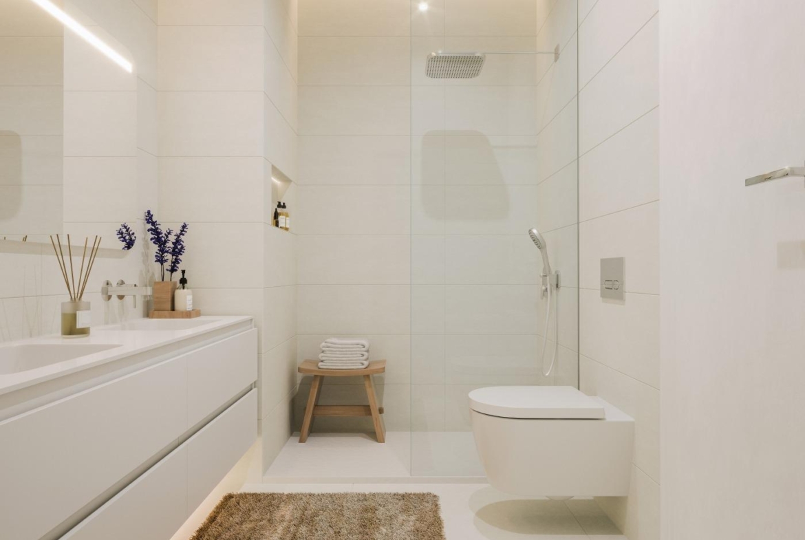 Dbałość o szczegóły definiuje te domy. Dzięki aluminiowej stolarce zewnętrznej z przegrodą termiczną, opancerzonym drzwiom wejściowym i pośredniemu oświetleniu LED w całym domu, każdy element został starannie dobrany. Opcjonalne dodatki, takie jak winda, zwiększają dostępność, a automatyczne nawadnianie kropelkowe zapewnia łatwą pielęgnację ogrodów.