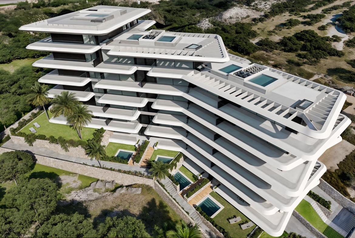 Domy na parterze mają ogród i opcjonalny prywatny basen, a penthousy mają solarium i basen na dachu.