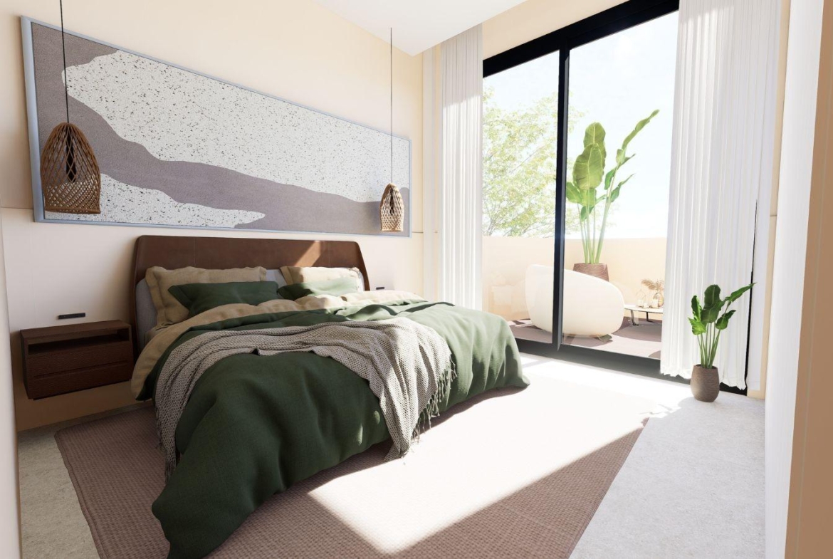 Wszystkie mieszkania zostały starannie zaprojektowane, aby maksymalnie wykorzystać naturalne światło i widok na morze z wyższych pięter. Otwarte układy łączą salon z jadalnią i nowoczesną zintegrowaną kuchnią, tworząc jasne i funkcjonalne przestrzenie. Apartamenty na parterze mają prywatne ogrody, mieszkania na środkowych piętrach mają tarasy z widokiem na morze, a penthouse’y oferują prywatne solaria na dachu, idealne do relaksu lub rozrywki pod słońcem Costa Blanca.