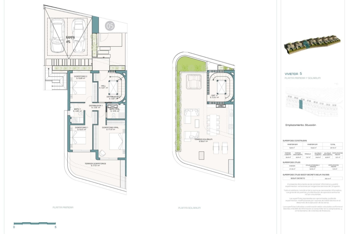 Każda willa oferuje 3 sypialnie, prywatny ogród i własny basen, tworząc idealną przestrzeń do relaksu, cieszenia się życiem rodzinnym i rozrywki na świeżym powietrzu. Zagospodarowane tereny wspólne zapewniają prywatność, zieleń i spokojną atmosferę w całej inwestycji. Na szczycie każdego domu znajduje się przestronne solarium, które stanowi idealne miejsce do opalania się, spożywania posiłków na świeżym powietrzu lub stworzenia przestrzeni do relaksu, ciesząc się śródziemnomorskim klimatem.