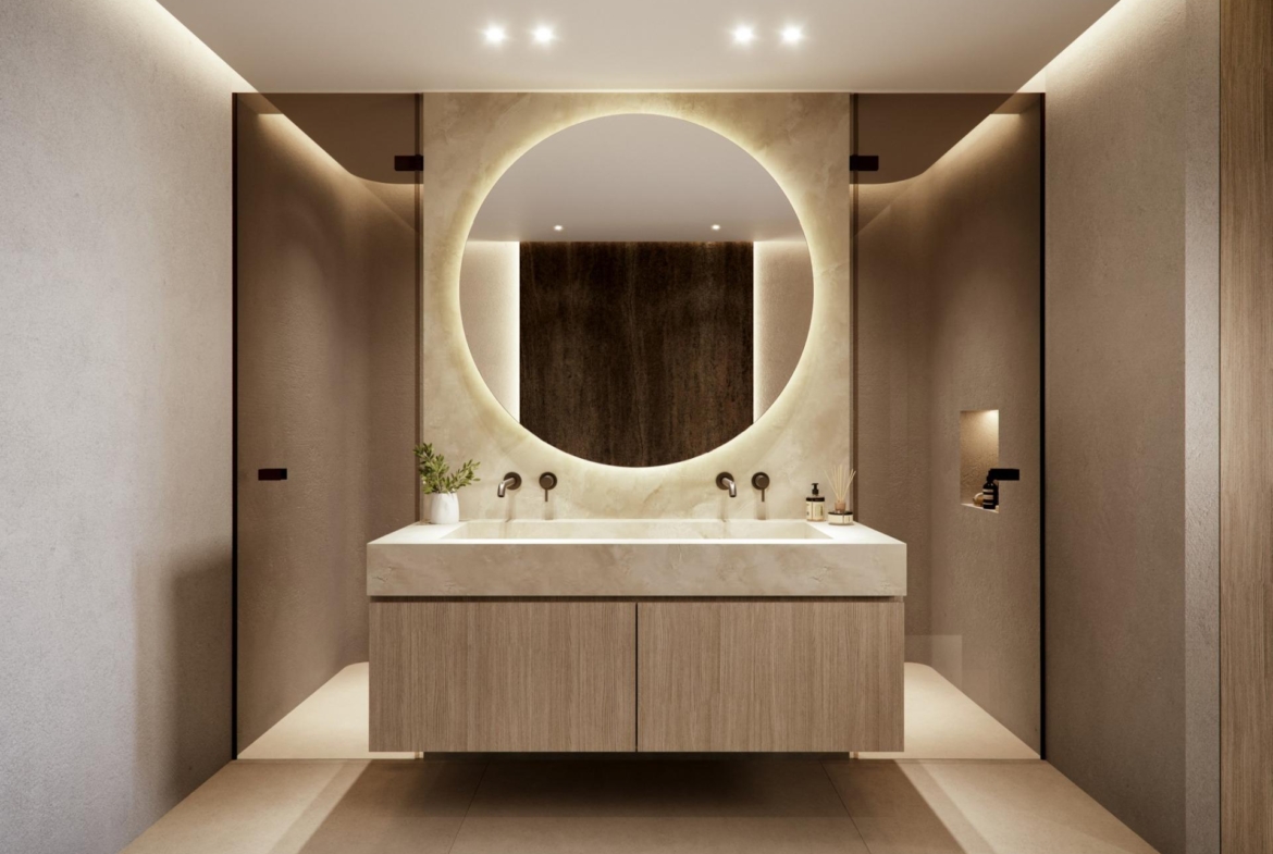 Każdy apartament posiada 2 lub 3 miejsca parkingowe i 1 pomieszczenie gospodarcze. Domy są wykończone wysokiej jakości materiałami i luksusowymi elementami, takimi jak duże płytki podłogowe i ścienne, w pełni wyposażone kuchnie z urządzeniami Miele, łazienki z toaletką, lustrem i kabiną prysznicową oraz w pełni zainstalowaną klimatyzacją kanałową.